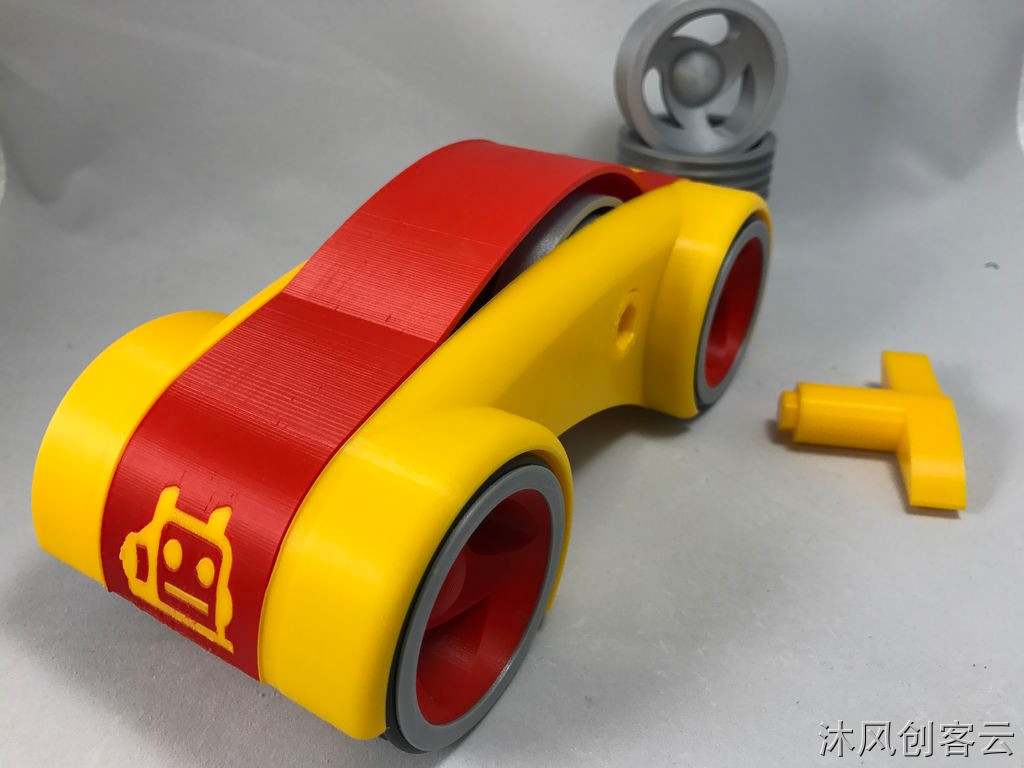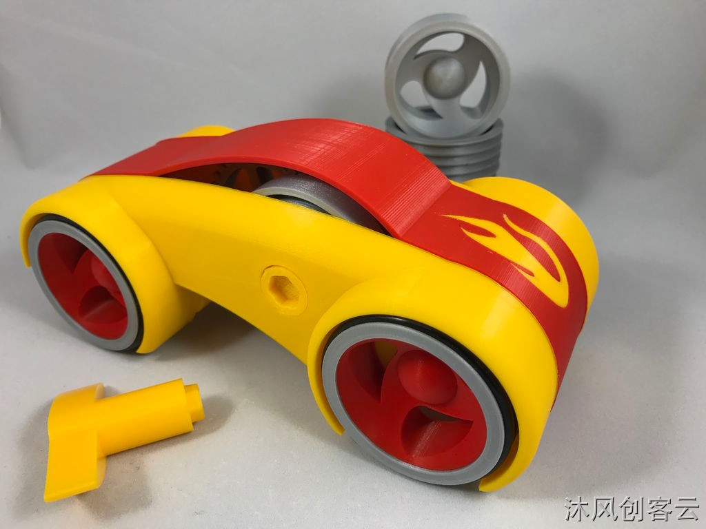 照片和视频中显示的轮子和车身顶部是为双挤压打印机设计的,但是文件内包含了所有必要部件的单个挤出版本。